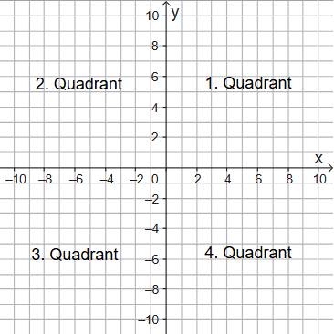 Wie sind die Quadranten 1 bis 4 im Koordinatensystem angeordnet?